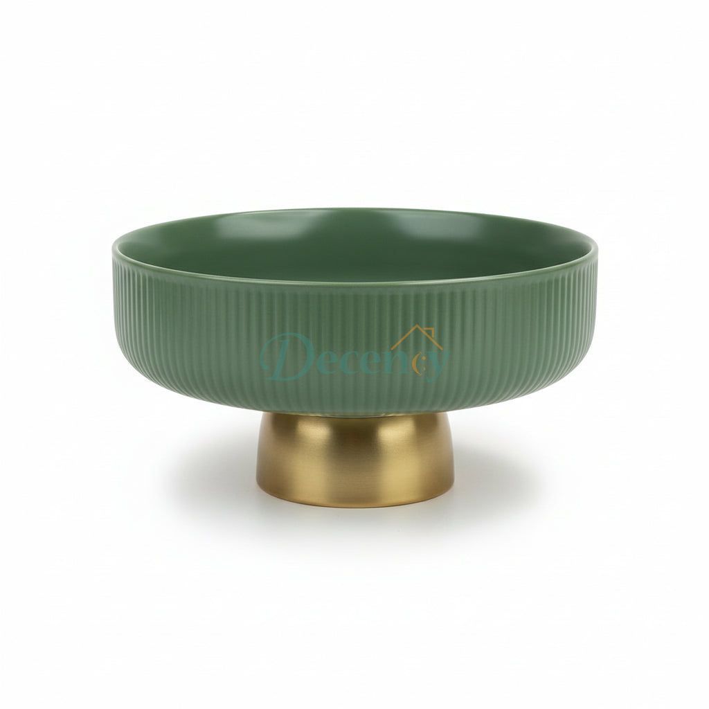 Ceramic Fruit Bowl with Gold Metal Base