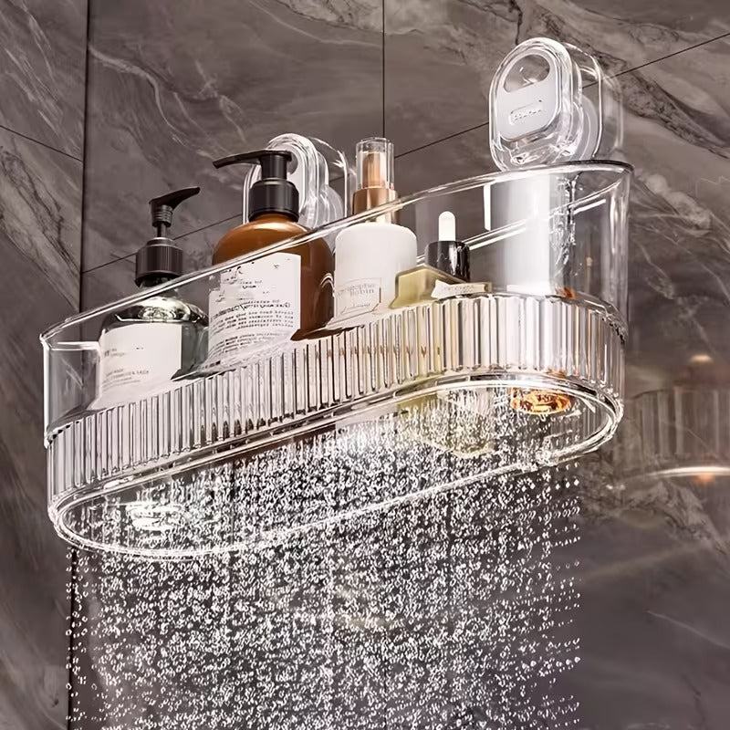 Luxury Wall-Mounted Suction Cup Storage Shelf - No Drilling Required, Durable Plastic Storage Box, Suitable for Shower Essentials, Cosmetics, and Toiletries - Versatile Bathroom Shelf, Lightweight and Easy to Install, Bathroom Accessory, No-drill