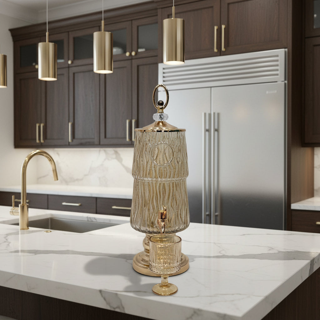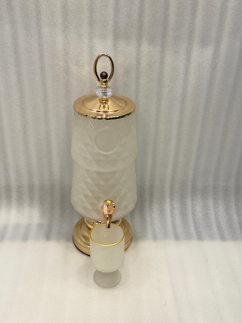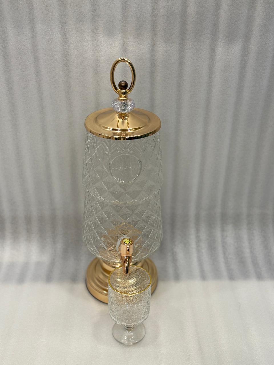 Luxury Glass Beverage Dispenser with 6 Glasses 3 Litre (Golden Base & Lid )
