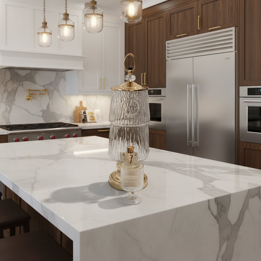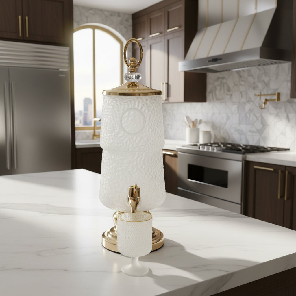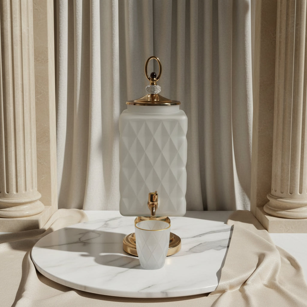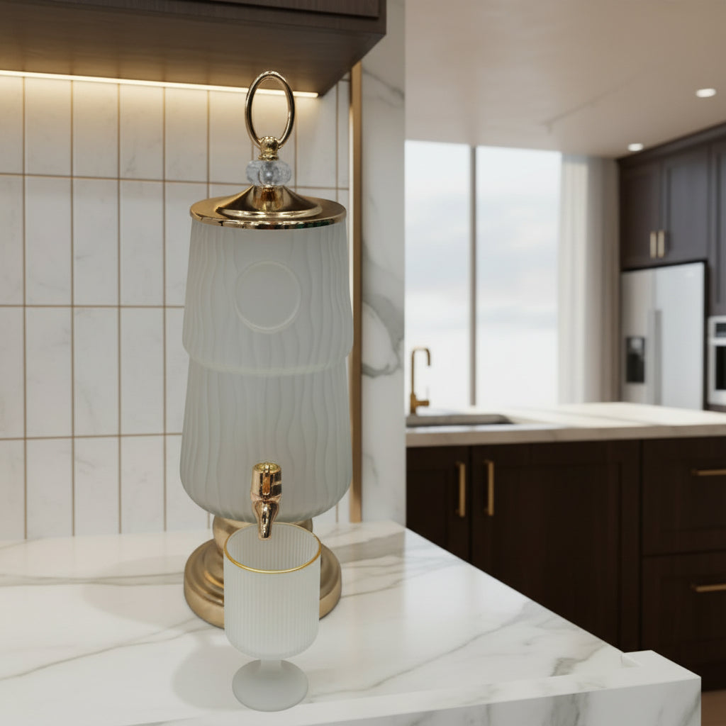 Luxury Glass Beverage Dispenser with 6 Glasses 3 Litre (Golden Base & Lid )