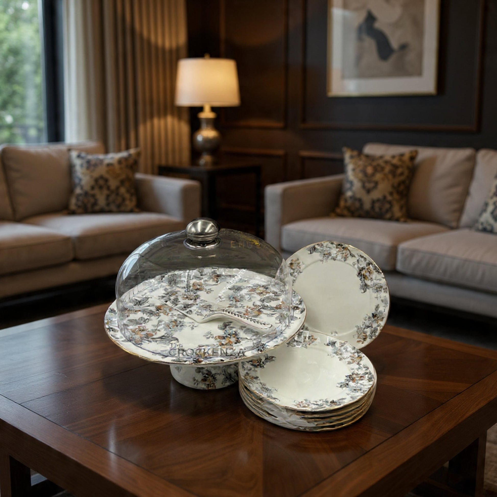 ndulge in timeless British charm with our Royal Albert–Inspired 9-Piece Cake Set, crafted to elevate every dessert moment into a royal experience. Designed with delicate floral patterns and finished with refined gold detailing, this set reflects classic luxury and graceful hosting.