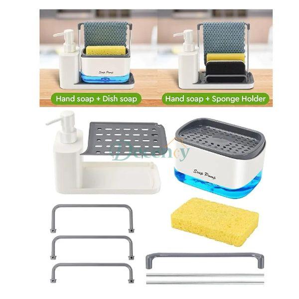 Make dishwashing faster and more convenient with this Multi-Functional Kitchen Soap Dispenser. Designed with dual soap dispensers, a sponge holder, and a dishcloth tray, it keeps your sink area organized and clutter-free. Just press to dispense soap directly onto your sponge and enjoy a mess-free cleaning experience. Perfect for modern kitchens, this dispenser saves time, space, and effort while adding a sleek, practical touch to your countertop.