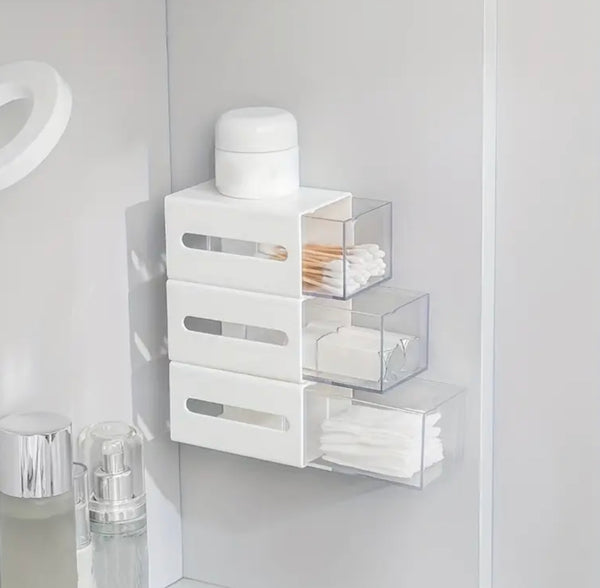 This Wall-Adhesive Storage Holder is a convenient and practical way to store small items while maximizing space. Made with a strong adhesive, it can hold up to 3 pounds of weight. Perfect for organizing your bathroom, kitchen, or office. The perfect solution for clutter-free living